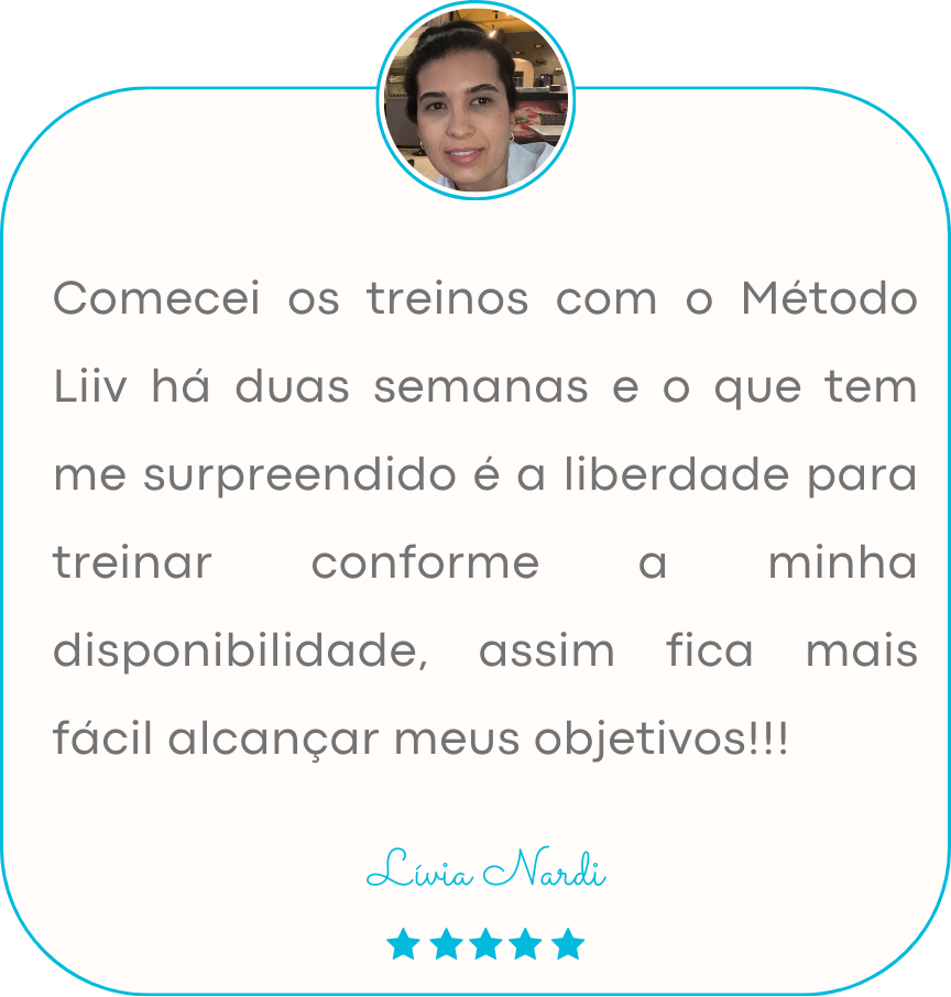 O Método Liiv é baseado na personalização total dos treinos. Entendemos que cada pessoa tem suas próprias metas e limitações, por isso, montamos planos de treinamento 100% ajustados à sua realidade, seja em casa ou na academia. Nosso foco está em criar rotinas que sejam eficazes, práticas e fáceis de seguir, para que você tenha resultados reais sem complicações.